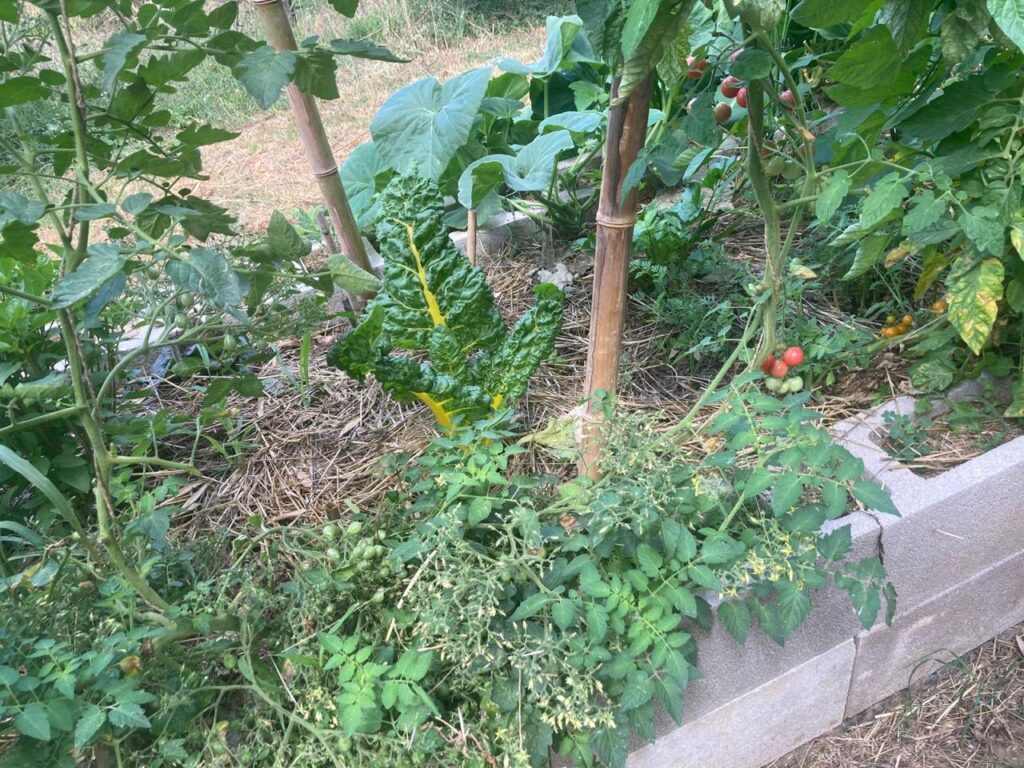 A maggio abbiamo iniziato a piantare. Abbiamo ottenuto ad oggi insalate, molti kg di pomodori ciliegini, una pianta di zucchine che ha fornito (e fornisce tuttora) 1-2 zucchine al giorno per 2 mesi, 5 cetrioli al giorno da 3 piante per 3 mesi, una zucca Butternut mostruosa che ha prodotto 10 zucche fino a quando non abbiamo deciso di ritirarla perché stava usando troppa della nostra preziosa acqua piovana e 10 zucche per la nostra famiglia erano sufficienti. Meloni, melanzane, peperoni, molte erbe e insalata. Piante di cappero nei blocchi e così via. È stata una coltivazione a bassa manutenzione con risultati molto produttivi! Abbiamo imparato molto e speriamo di continuare a migliorare la nostra resa man mano che ci avviciniamo alla semina dell’orto autunnale. Non abbiamo usato l’ombreggiante ma le piante si sono ombreggiate a vicenda, come potete vedere dalle foto.