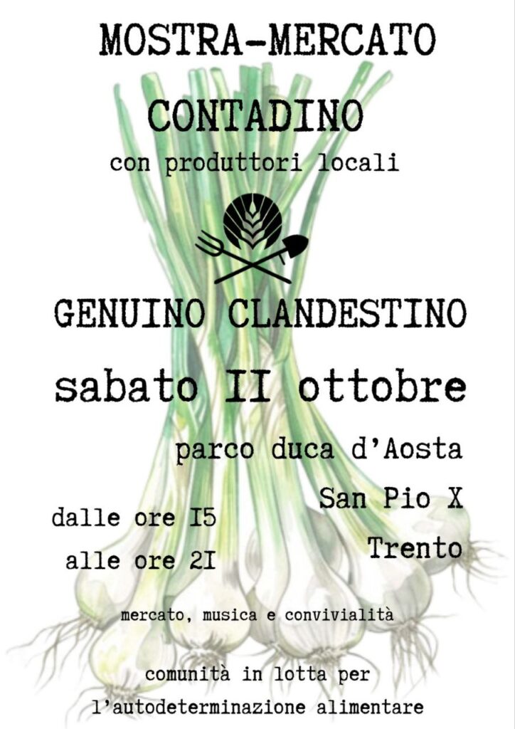 Home Events - WWOOF Italia Dalle nostre reti iniziative Mostra – Mercato Contadino con Produttori Locali Organizzatore Genuino Clandestino Sito web https://genuinoclandestino.it/ Luogo Parco Duca d'Aosta Parco Duca d'Aosta, TN Categoria Dalle nostre retiiniziative footer2 Italiano English(Inglese) Data Ott 11 2025 Expired! Ora 3:00 pm - 9:00 pm Mostra – Mercato Contadino con Produttori Locali Condividi questo evento X + Aggiungi a Google Calendar + esporta iCal / Outlook Tags: autodeterminazione alimentare, Comunità in lotta, convivialità, mercato contadino, musica, produttori locali