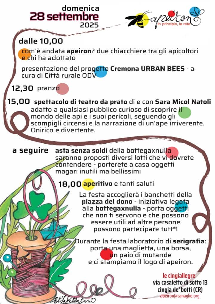 Insieme alla rete di Apeiron 🐝 stiamo organizzando una festa per domenica 28 settembre, presso la Cascina delle Cingiallegre.